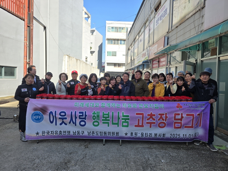 한국자유총연맹 남촌도림동위원회는 30여 명의 회원들이 모여 직접 고추장을 담그고, 정성스럽게 포장한 고추장 400개를 경로당과 복지시설 20곳과 홀몸어르신 등 취약계층에 전달했다.