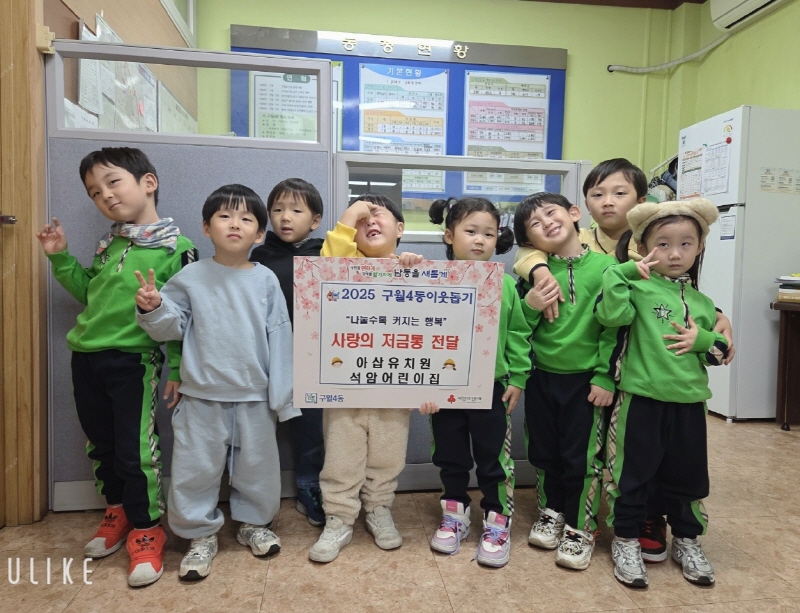 이윤정 동장은 “지역사회를 위해 따뜻한 마음을 전해주신 교직원, 원아, 부모님들께 감사드리며, 취약계층의 복지를 위해 사용하겠다”라고 밝혔다.