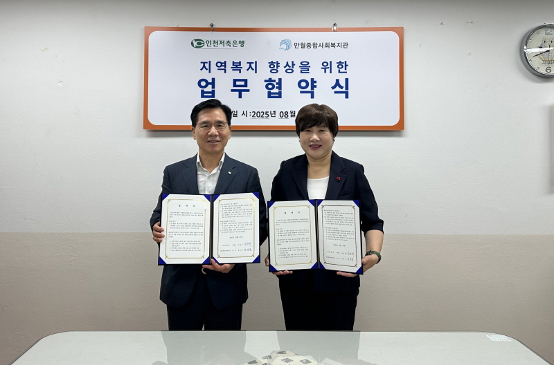 (e시민일보) 박순신 기자 = 만월종합사회복지관(관장 임경임)은 8월 27일, 지역사회 복지 증진 및 사회적 가치 실현을 위해 ㈜인천저축은행(은행장 김관배)과 업무협약을 체결했다고 28일 밝혔다.