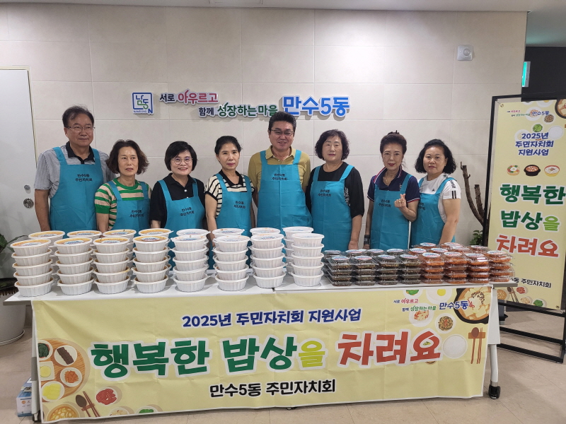 2025년 만수5동 주민자치회 지원사업 ‘행복한 밥상을 차려요’는 독거노인, 기초생활수급가정 등 평소 식사 준비가 어려운 이웃들에게 건강한 식사를 제공하는 사업이다.