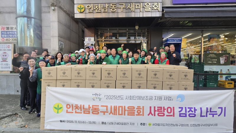 (e시민일보) 황하선 기자 = 인천시 남동구 새마을회는 새마을회관에서 ‘2025 사랑의 김장 나눔 행사’를 열고, 취약계층 340가구에 사랑의 김장김치를 전달했다고 17일 전했다.