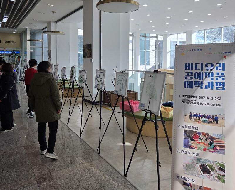 (e시민일보) 구은회 기자 = 인천시 남동구 구월3동 행정복지센터는 통장자율회(회장 유미)가 남동구청 1층 로비에서 이달 21일까지 ‘자원순환 바다유리공예 전시회’를 개최했다고 18일 밝혔다.