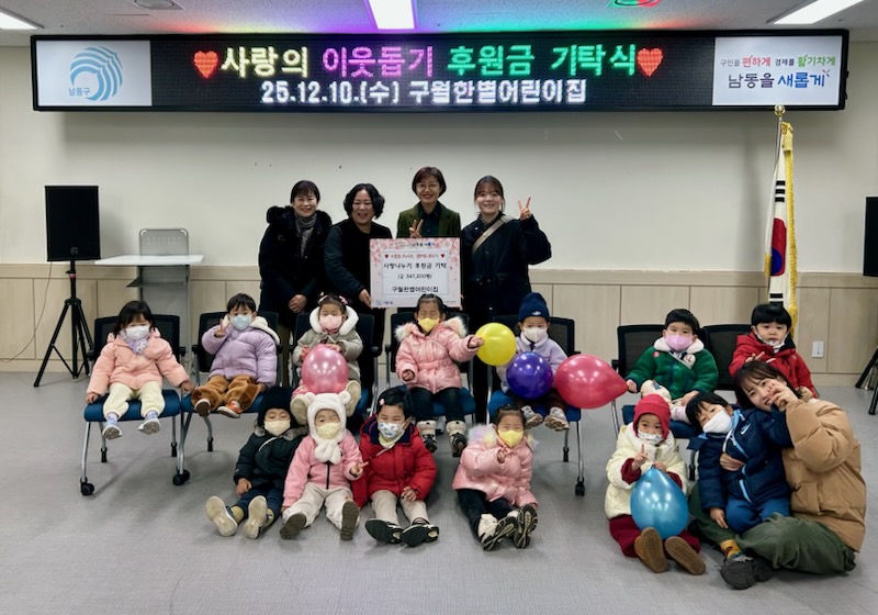 박은경 동장은 “따뜻한 마음을 모아 주신 국공립 구월한별어린이집에 감사드린다”라며 “이번 나눔이 지역의 아이들이 추운 겨울을 나는 데 큰 도움이 될 것”이라고 밝혔다.